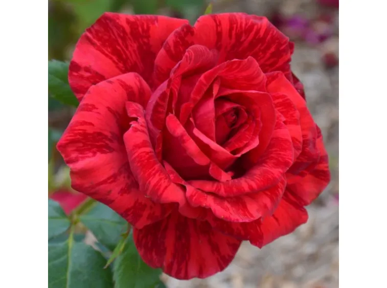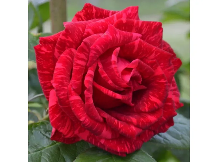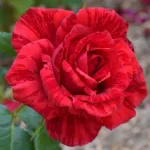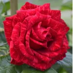 Fleur élégante, double, en forme de coupe, de 12 cm de diamètre, composée d'environ 40 pétales rouges avec des stries sombres, presque sans parfum mais très florifère. Plante vigoureuse et saine, elle pousse bien en buisson, presque sans épines, atteignant jusqu'à 100 cm de hauteur et 60 cm de largeur. Feuillage vert foncé.