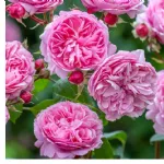 Les fleurs sont grandes, très doubles, en coupe, d’environ 9 cm de diamètre, composées d’environ 100 pétales rose qui évoluent avec le temps vers une teinte lavande. Le parfum est modéré, rappelant celui des roses anciennes. La floraison se fait en grappes de 3 à 5 fleurs tout au long de la saison.