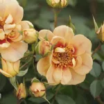 Fleur semblable à la pêche, double, en forme de coupe, de 12 cm de diamètre avec des pétales ambrés et un centre sombre; parfum intense; c'est une variété appréciée des insectes pollinisateurs. Elle pousse saine, robuste, buissonnante et compacte jusqu'à 120 cm de hauteur; elle refleurit.