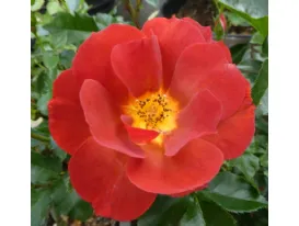 Il s’agit d’une rose floribunda de couleur rouge-orange brunâtre, très belle, avec des fleurs de taille moyenne, doubles, qui comptent de 17 à 25 pétales, légèrement parfumées.
