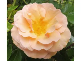 Fleur semi double, en forme de coupe, de 9 cm de diamètre, composée de 15-25 pétales orange-rosé (rose corail) légèrement parfumés.