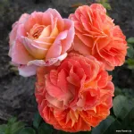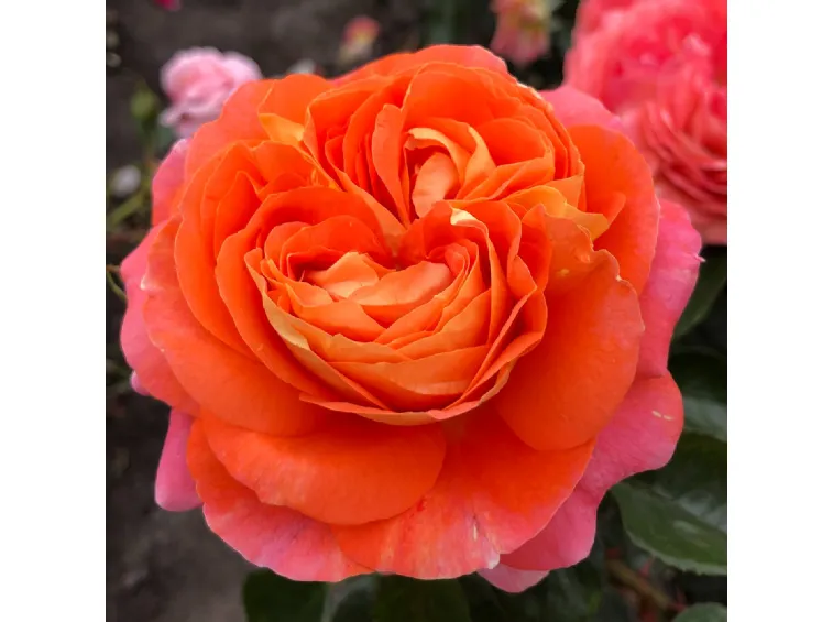 Samba® Kordes Floribunda de couleur orange intense avec un revers jaune; légèrement parfumée; remontante et saine.
