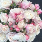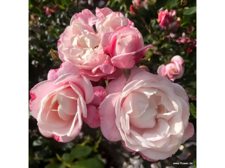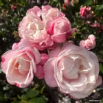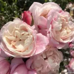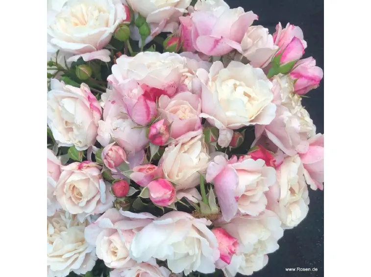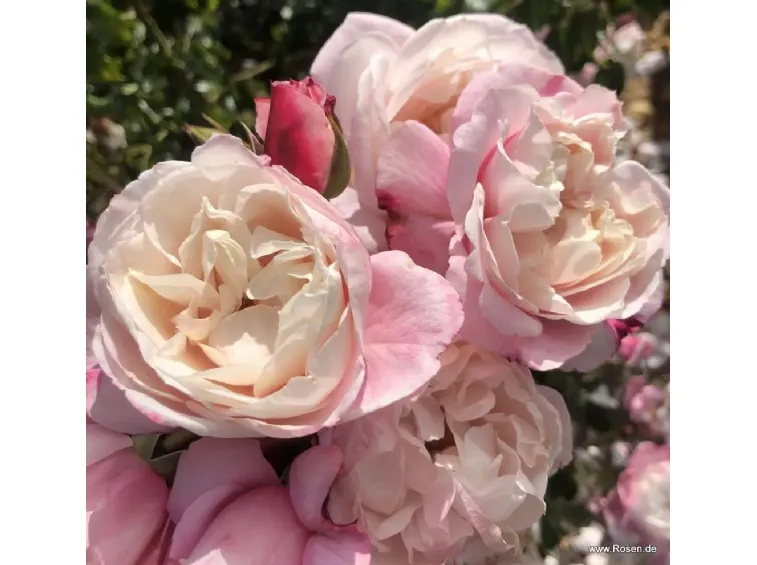 Les fleurs sont grandes, doubles et en coupe, composées d’environ 25 pétales de couleur crème aux nuances rosées, dégageant un parfum fruité et gourmand. La plante dépasse 250 cm de hauteur, présente une grande rusticité et une excellente résistance aux maladies, et est remontante.